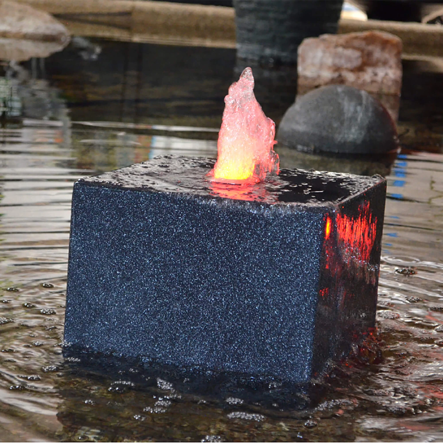 Setzen Sie Ihren Steinbrunnen, Quellstein oder Wasserspiel effektvoll in Szene mit dem RGB Schlauchanschluss inkl. Transformator und RGB-Controller.