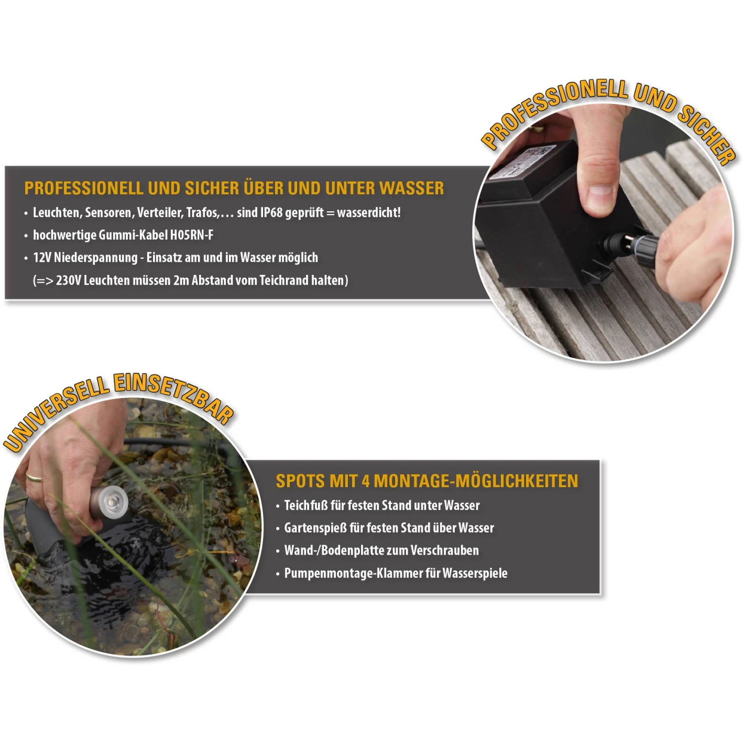 - Für die Illumination des Wasserspiels liegt ebenfalls eine Montagemöglichkeit dabei.