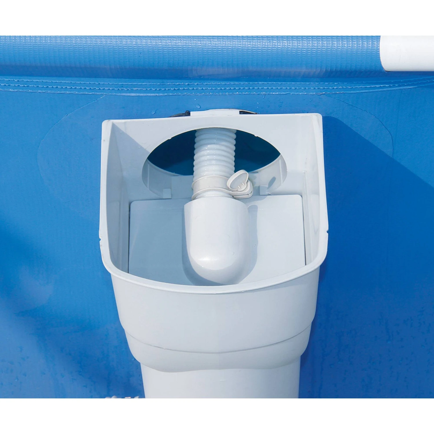 Zusätzlich besitzt der Pool zwei Anschlüsse (32mm) für eine Filterpumpe (nicht enthalten). Ein Sandfilter oder Kartuschenfilter trägt zur Wasserreinigung und Pflege bei und hilft, in Verbindung mit Wasserpflegemittel, zur Sauberkeit des Wassers.