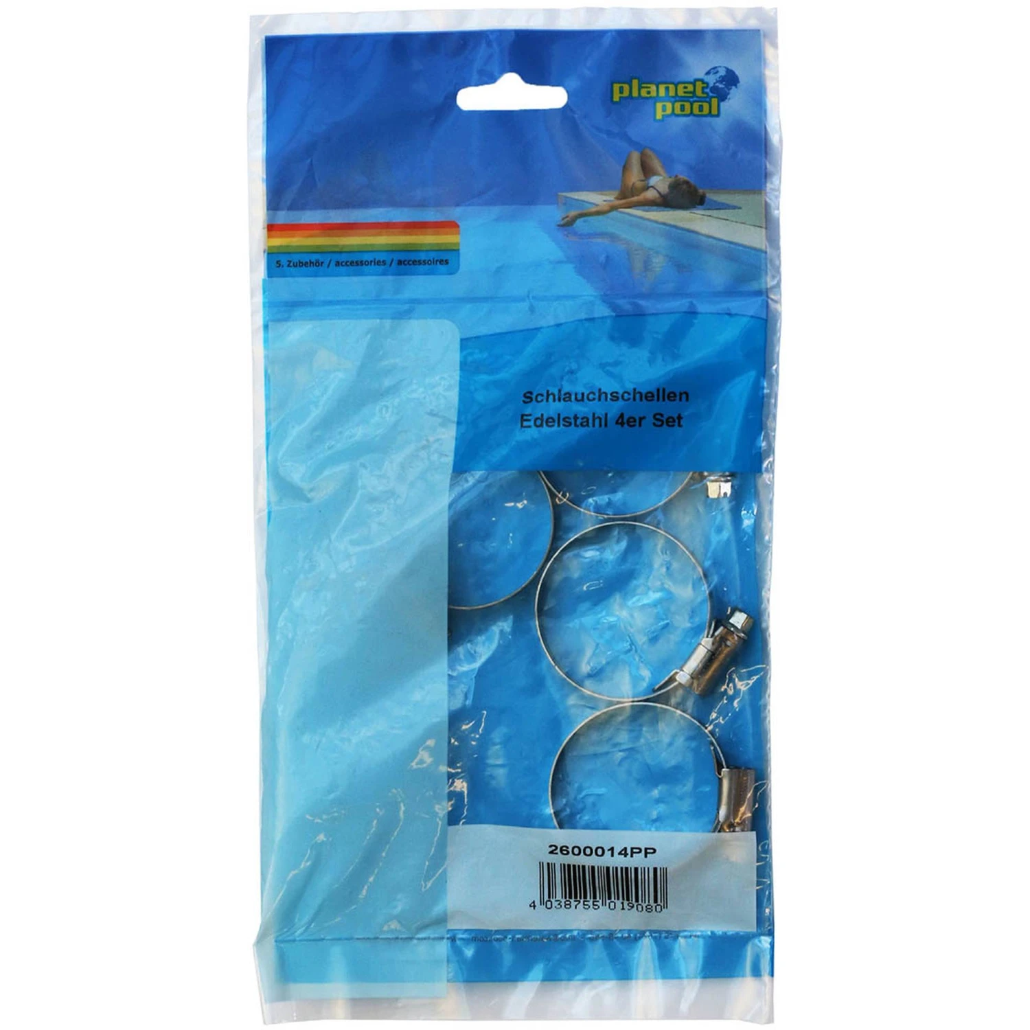Schlauchschellen Edelstahl 4-er Set 30-45 mm. Zur Befestigung von z.B.: Schwimmbadschläuchen an Sandfilteranlagen, Skimmern, Einlaufdüsen etc..