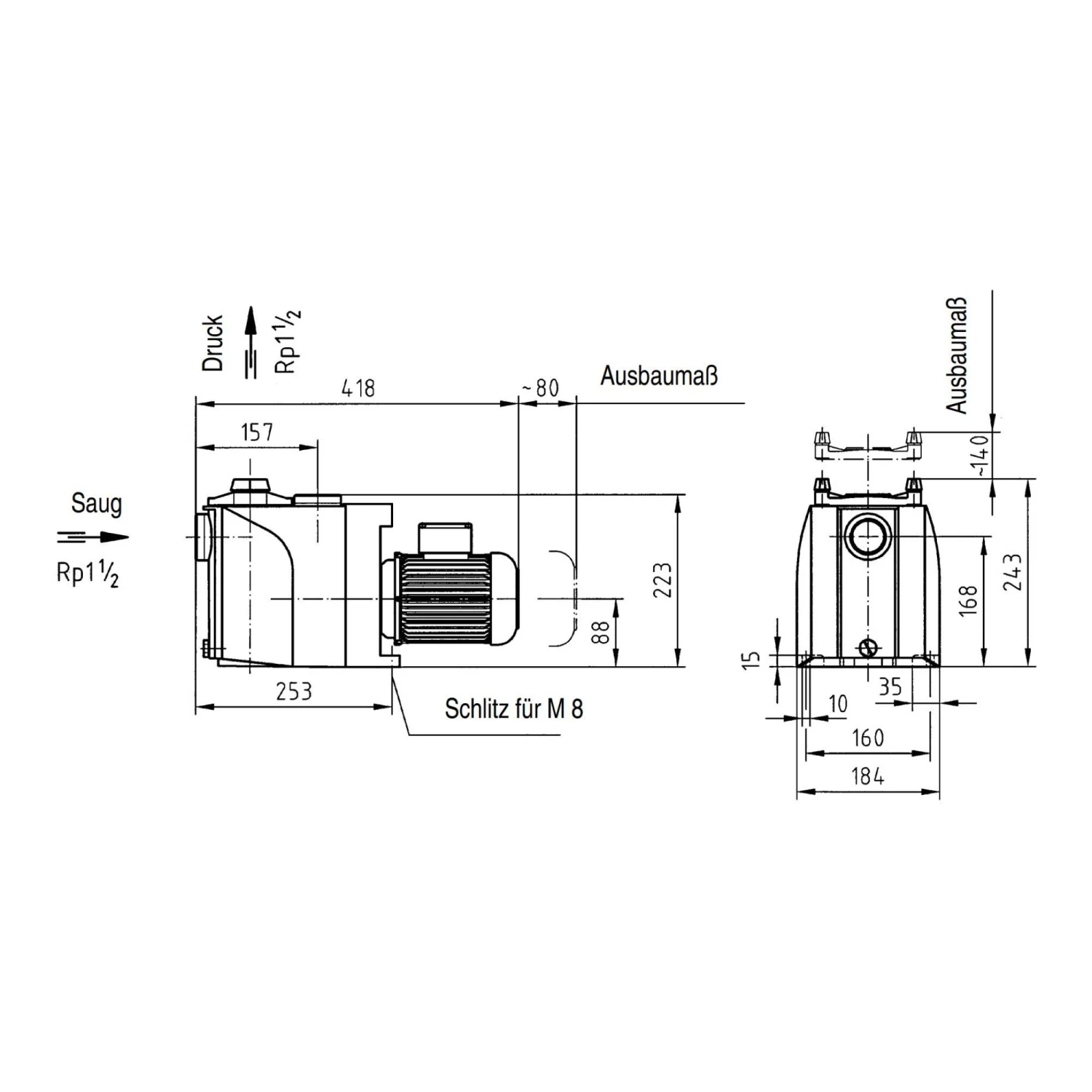 Schwimmbadwasser-Umwälzung in Filteranlagen, aufstellbar max. 3 m oberhalb oder max. 3 m unterhalb des Wasserniveaus.