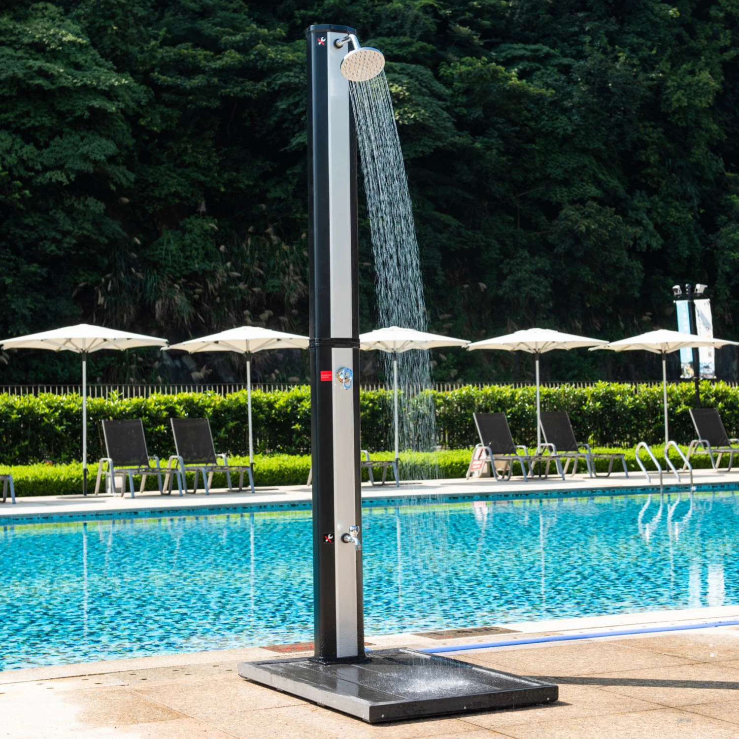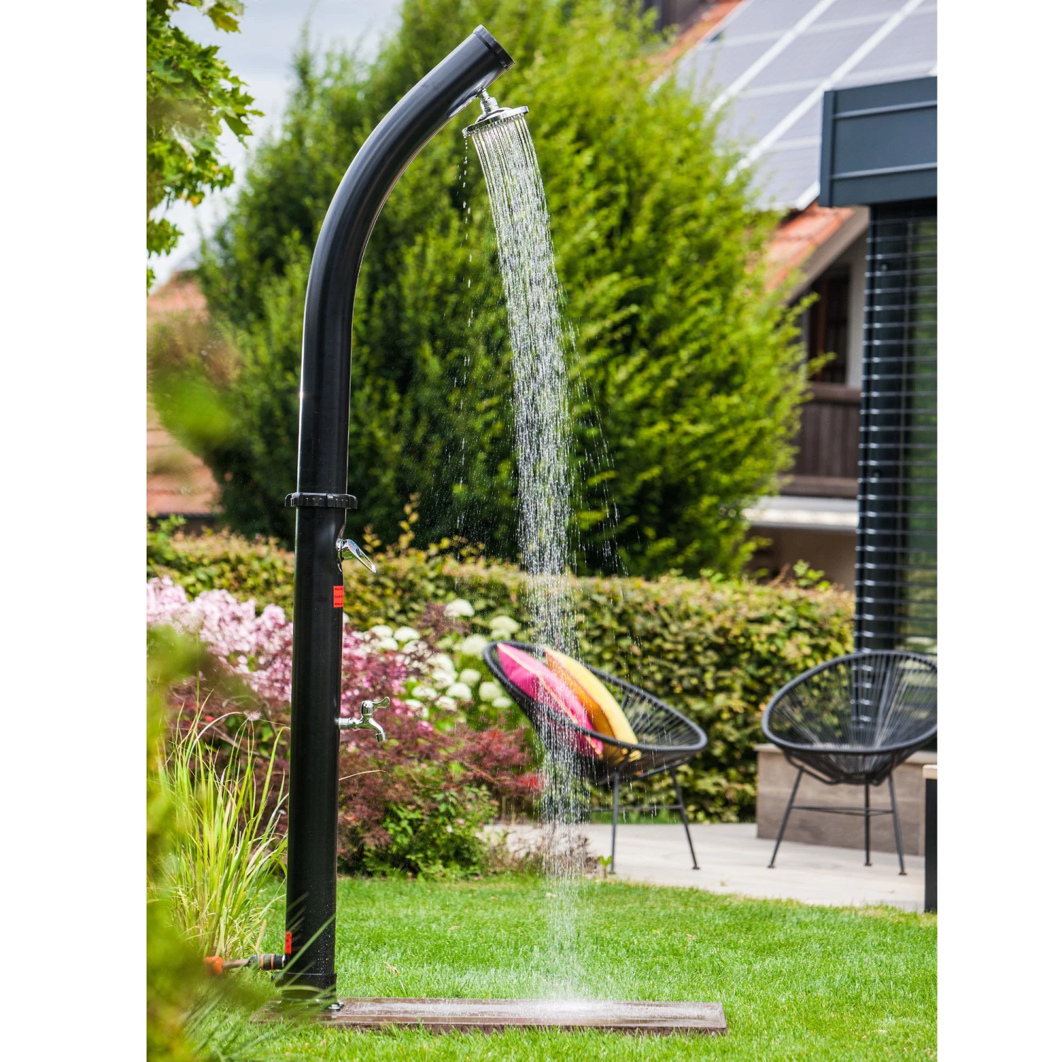 Einfach vor die Gartendusche oder unter die Poolinstiegsleiter auf ebenen Grund legen und schon kann es losgehen.