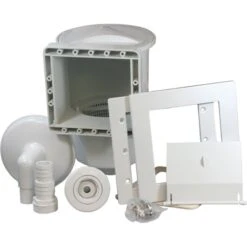 Set besteht aus: Skimmergehäuse, Dichtungen, Schraubflansch, Beckeneinlaufdüse, Bodenasugeranschluss, Schlauchschellen, Schlauchtülle und Winterverschlusskappe