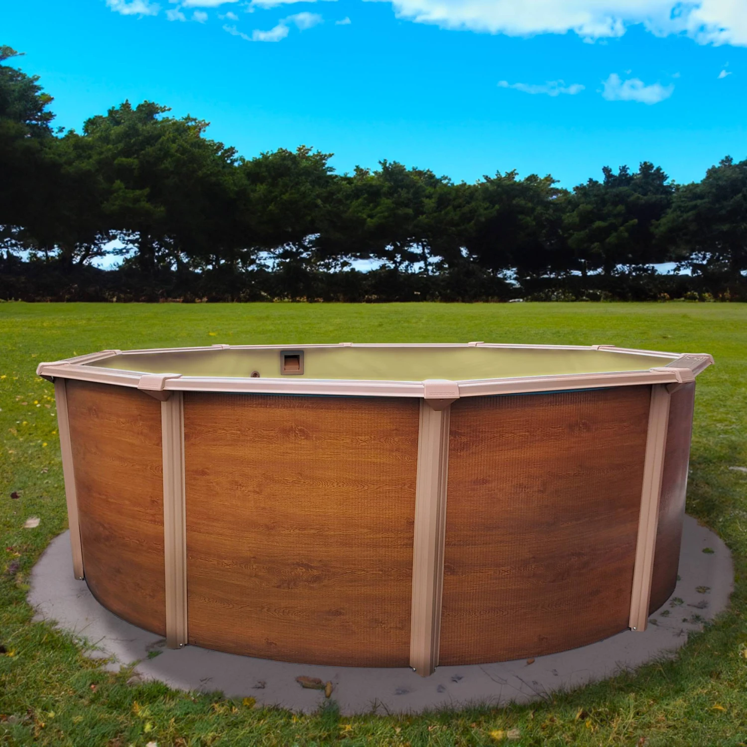 Produktinformationen Stahlwandpool rund 350×120 cm, Stahl 0,4 mm Holzoptik, Folie 0,3 mm sand, overlap